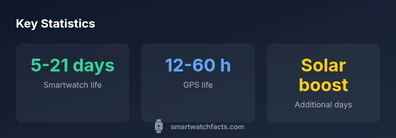 Garmin's lineup spans several families designed for different kinds of users. The battery life you see in smartwatch mode can range from a few days to multiple weeks, largely driven by display technology, sensor load, and software efficiency. A key takeaway is that model design and firmware optimizations influence real-world endurance just as much as advertised specs. The Smartwatch Facts team notes that practical uptime often diverges from marketing figures, depending on how you wear the watch and what features you enable. For example, a basic outdoor-focused model will typically last longer than a feature-rich smartwatch with Always-On Display, music, and continuous heart-rate monitoring.