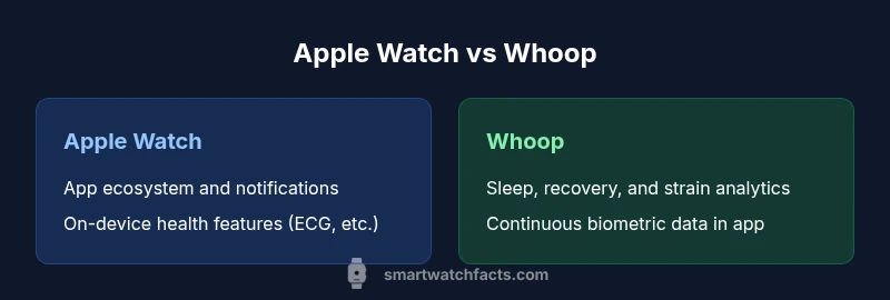 Apple Watch is the everyday wearable with apps and notifications; Whoop specializes in training insights and recovery metrics.