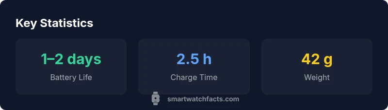 In mixed use, expect about a day to a day and a half on a single charge. GPS-heavy workouts or bright displays can shorten that window. Charging is straightforward via the included cradle.
