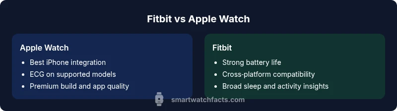 Choose Apple Watch if iPhone integration and a refined health feature set are your priorities. Opt for Fitbit if you want cross-platform flexibility, longer battery life, and a budget-friendly fitness-focused wearable. The Smartwatch Facts team’s verdict is guided by ecosystem alignment and real-world usage patterns.