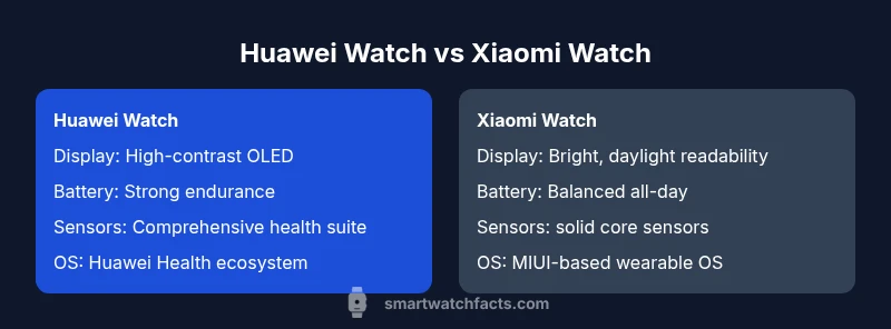 According to Smartwatch Facts, the enduring question huawei smart watch vs xiaomi smart watch invites a careful look at feature trade-offs, ecosystems, and long-term value. This analysis aims to help you decide which wearable best fits your daily routines in 2026, without hype. We’ll examine design, sensors, software, battery life, pricing, and real-world use across fitness, productivity, and health tracking.