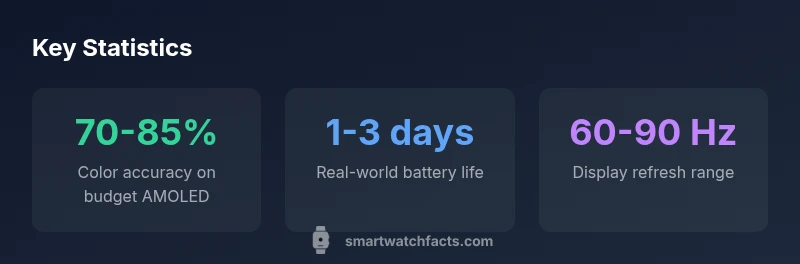 AMOLED is a display technology that delivers deep blacks and vibrant colors by lighting each pixel individually. In the context of the budget segment, you gain excellent contrast and punchy UI visuals without paying a premium. In this article, the phrase amoled display smartwatch under 5000 captures the core value: you can access strong display quality at a price point that fits casual budgeting. According to Smartwatch Facts, the best entries in this tier balance color accuracy, outdoor readability, and energy efficiency. Expect good skin-tone reproduction and smooth animations, but be mindful of peak brightness and endurance in direct sun. When evaluating devices, confirm at least a 60 Hz refresh and a reliable automatic brightness mode to preserve battery life.