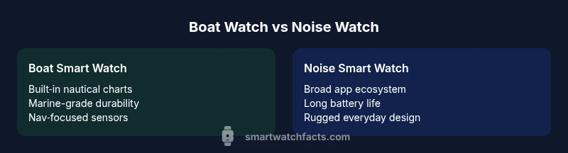 Understanding the core differences between a boat smart watch and a Noise smart watch requires looking at mission-critical features for marine use. A boat-specific device prioritizes navigational tools, water immersion handling, and integration with charting apps, while Noise devices emphasize rugged design, battery endurance, and broad app ecosystems for everyday wear. According to Smartwatch Facts, the best choice depends on your primary boating activities, environment, and how you value navigation accuracy versus convenience. In the phrase boat smart watch vs noise smart watch, you are comparing two design philosophies: specialized seafaring tools and versatile outdoor wear. The following sections unpack these axes with practical benchmarks and real-world examples.