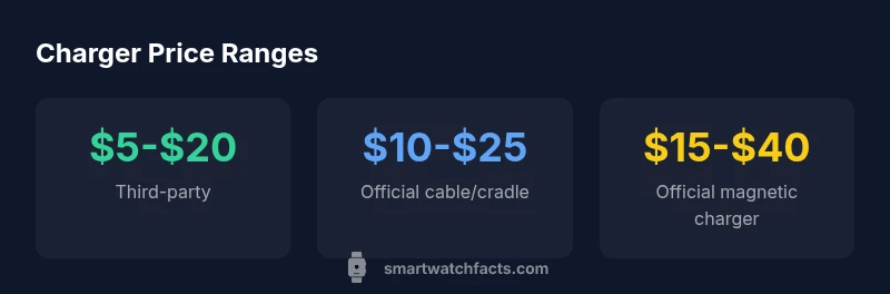 Prices for smartwatch chargers vary widely, and the single question many shoppers ask is how much is a smart watch charger. In reality, the price depends on the charging standard, the type of charger, the brand, and the level of protection offered. According to Smartwatch Facts, the cost ceiling tends to be higher for official, model-specific chargers and lower for generic options, but compatibility cannot be sacrificed for price. If you own an upscale smartwatch with a proprietary magnetic puck, you may pay a premium for a charger designed to align precisely and minimize the risk of misalignment. Conversely, older or more common USB-C cradle options can be cheaper but may require adapters or slower charging speeds. When evaluating price, also consider what’s included in the package: cables, docks, travel adapters, or extra cables can add value but increase upfront cost. Finally, beware of counterfeit chargers that promise huge savings but fail safety tests or lack certifications. Across brands, the strongest buyers focus on official compatibility, safety features, and a reasonable warranty window, as these reduce the chance of damaging the watch or the charger itself.