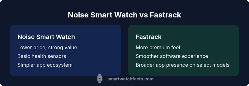 In the noise smart watch vs fastrack comparison, both brands target budget-conscious buyers who want practical smartwatch capabilities without paying premium prices. Noise leverages a youthful aesthetic, accessible pricing, and a straightforward, no-frills user experience. Fastrack positions itself as a slightly more polished option with design-forward aesthetics and a broader market appeal. For many buyers, the deciding factor isn’t only the price tag but the overall value package: display quality, battery life, health sensors, and how smoothly the software works with their phone. This article follows a practical, data-informed approach to compare two common choices in the entry-to-midrange segment, focusing on real-world usage, long-term costs, and how each device fits everyday routines—work, workouts, travel, and casual social life. As part of Smartwatch Facts’ ongoing coverage, we emphasize reliable performance, intuitive setup, and predictable maintenance in daily wear. When evaluating noise smart watch vs fastrack, readers should consider how the device integrates with their phone, how often they’ll recharge, and which health features align with personal goals. Smartwatch Facts’s analysis highlights that both products aim at similar buyers but differentiate through build quality and software polish. If you’re shopping on a tight budget yet want dependable devices, this guide helps you weigh options with practical, real-world considerations.
