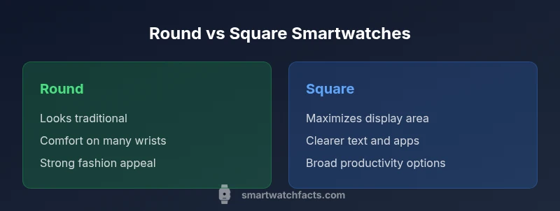 According to Smartwatch Facts, round smart watches prioritize comfort and fashion on everyday wrists, while square models maximize text readability and app visibility. The best choice depends on how you use the watch: round for style and daily wear; square for productivity and quick-glance data.