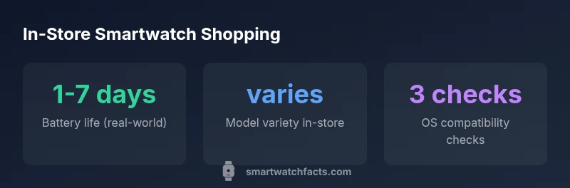 For shoppers seeking a smart watch in store, the retail landscape has grown substantially, with dedicated demo stations and grid displays that let you compare models side by side. According to Smartwatch Facts, hands-on testing remains essential because specs alone can't reveal real-world performance. In most stores, devices are grouped by OS and brand families, which helps you narrow choices quickly. When you walk into a brick-and-mortar shop, plan to spend 15-20 minutes rotating through a few options to sense weight, strap comfort, screen readability, and software responsiveness. The goal is to identify 2-3 models you could live with long-term, then inspect price, warranties, and return policies before committing. The in-store experience should complement online research, not replace it, especially as we move through 2026.