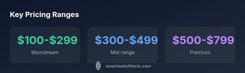 Price ranges by category help separate signal from noise. In practical terms, budget watches under $100 often cover basics like steps, notifications, and a few health sensors, but with shorter battery life and more basic displays. Mainstream models typically land between $100 and $299 and balance depth of features with reliability. They commonly include GPS, multi-day battery life, water resistance, and a broad app ecosystem. Mid-range or 'near-premium' watches sit in the $300–$499 band, offering better materials, brighter displays, faster processors, more extensive health tracking, and sometimes cellular options. Premium flagship models usually run $500–$799 or higher and emphasize top-tier materials, advanced health features, and longer software support. It’s worth noting that a handful of special editions or brand-name divisions may push some price points beyond these bands, but the central ladder remains a useful budgeting scaffold for most buyers. The price ladder aligns with observed consumer demand patterns, as reported by Smartwatch Facts Analysis, 2026, and helps shoppers target devices that meet real needs without overspending.