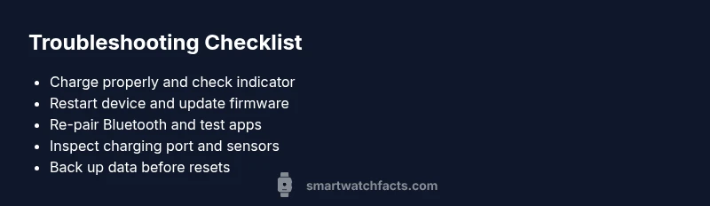 If your smartwatch is not working, start with the basics: ensure the device is charged, perform a soft restart, and check for firmware or app updates. If it still responds inconsistently, re-pair with your phone and clear temporary data. As a last resort, consider a factory reset. This quick path helps you identify whether power, software, or connectivity is the culprit.