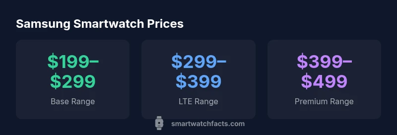 Pricing for Samsung smartwatches isn't a single fixed figure; it's a function of hardware, connectivity, and where you buy. The manufacturer sets an MSRP that reflects core capabilities—display size, processor speed, battery life, health sensors—and then retailers adjust based on stock, promotions, and local taxes. Another big factor is variant tier: base GPS-only watches cost less than LTE-enabled versions, while premium editions or materials push the price higher. Refurbished or certified pre-owned units can further vary. In 2026, the Smartwatch Facts team observes that price sensitivity remains high among buyers, especially when a newer model launches, prompting price adjustments across generations.