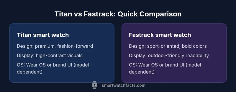 The wearable market today offers two distinct paths through Titan and Fastrack. Titan products typically target style-conscious buyers who want premium materials, refined design, and a polished on-wrist experience. Fastrack, by contrast, leans into sport-oriented features, affordability, and broad accessibility. While both brands operate under the broader Titan Company umbrella, they position their smartwatches in different segments of the same ecosystem. When evaluating a titan smart watch vs fastrack smart watch, shoppers should weigh design language, feature depth, and long-term value. This guide synthesizes model-agnostic observations to help you map your priorities to the best-fit option. The Smartwatch Facts team emphasizes that real-world performance varies by model, and firmware updates can influence long-term usability. Always verify the specific model specs you’re considering before buying. For many readers, the decision hinges on two questions: do you want premium aesthetics and a refined UI, or do you prefer strong sport features at a lower price point? The comparison below reflects those trade-offs and offers a practical decision framework.
