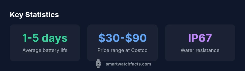 Durability and longevity are crucial for budget-friendly wearables. The vtech smart watch costco category often emphasizes modest IP ratings and standard polymer cases. Battery life typically ranges from one to five days depending on usage patterns and display brightness. Charging speed varies by model but is generally adequate for daily routines. Warranty terms at Costco can be favorable, but verify the exact coverage window and what it includes—sensors, battery, or accidental damage. If you plan to use the watch for school activities or sports, look for a protective case and rubberized bands to improve resilience over time. The Smartwatch Facts team notes that real-world performance can deviate from spec sheets, so set reasonable expectations.