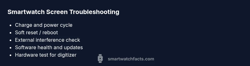 If you're wondering why is my smart watch screen not working, this guide will help you diagnose and fix the issue fast. According to Smartwatch Facts, screen problems on wearables are often rooted in power, software, or environmental factors. This quick start focuses on the fastest checks you can perform at home, while protecting your data and device warranties. Start with a calm, systematic approach: verify power, perform a soft reset, and inspect for obvious damage. If the screen remains unresponsive after these steps, you’ve got a clear signal to back up data and consider a factory reset or professional inspection. Smartwatch Facts analysis shows that most home fixes resolve the majority of screen issues without servicing.