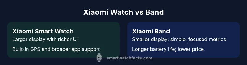 An objective, data-backed comparison of Xiaomi's smartwatch and Xiaomi Band, covering display, sensors, battery life, compatibility, price, and ecosystem to help you choose the right wearable.