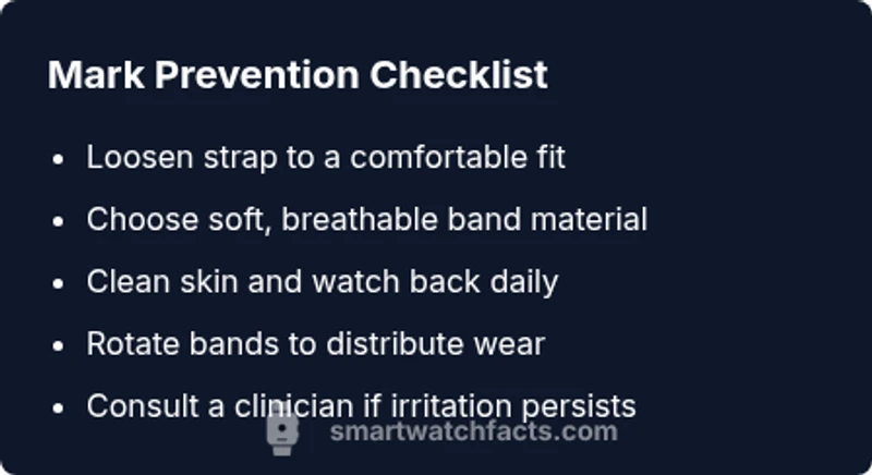 If marks persist despite adjusting fit and band material, or if you notice signs of an allergic reaction (rash, blistering, or intense itching), seek medical advice. A derma specialist can identify contact dermatitis or material allergies, while a clinician can guide you on safe band choices and skin care routines. The Smartwatch Facts team recommends erring on the side of skin health: prioritize comfort, cleanliness, and proper fit, and don’t hesitate to consult professionals if irritation continues.