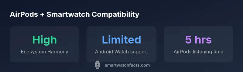 The question can smart watch and airpods work together is increasingly common as wearables and earbuds gain broader support. According to Smartwatch Facts, the general answer is yes, but not all features are available on every pairing. In practice, you’ll typically be able to play audio from the AirPods and handle basic calls when the devices are connected, with the smoothest experience on Apple devices. If you’re using a non-Apple smartwatch, expect some feature limitations and potential variability across models. The core idea is straightforward: AirPods act as an audio output device, while the watch controls playback and calls, depending on OS and firmware.